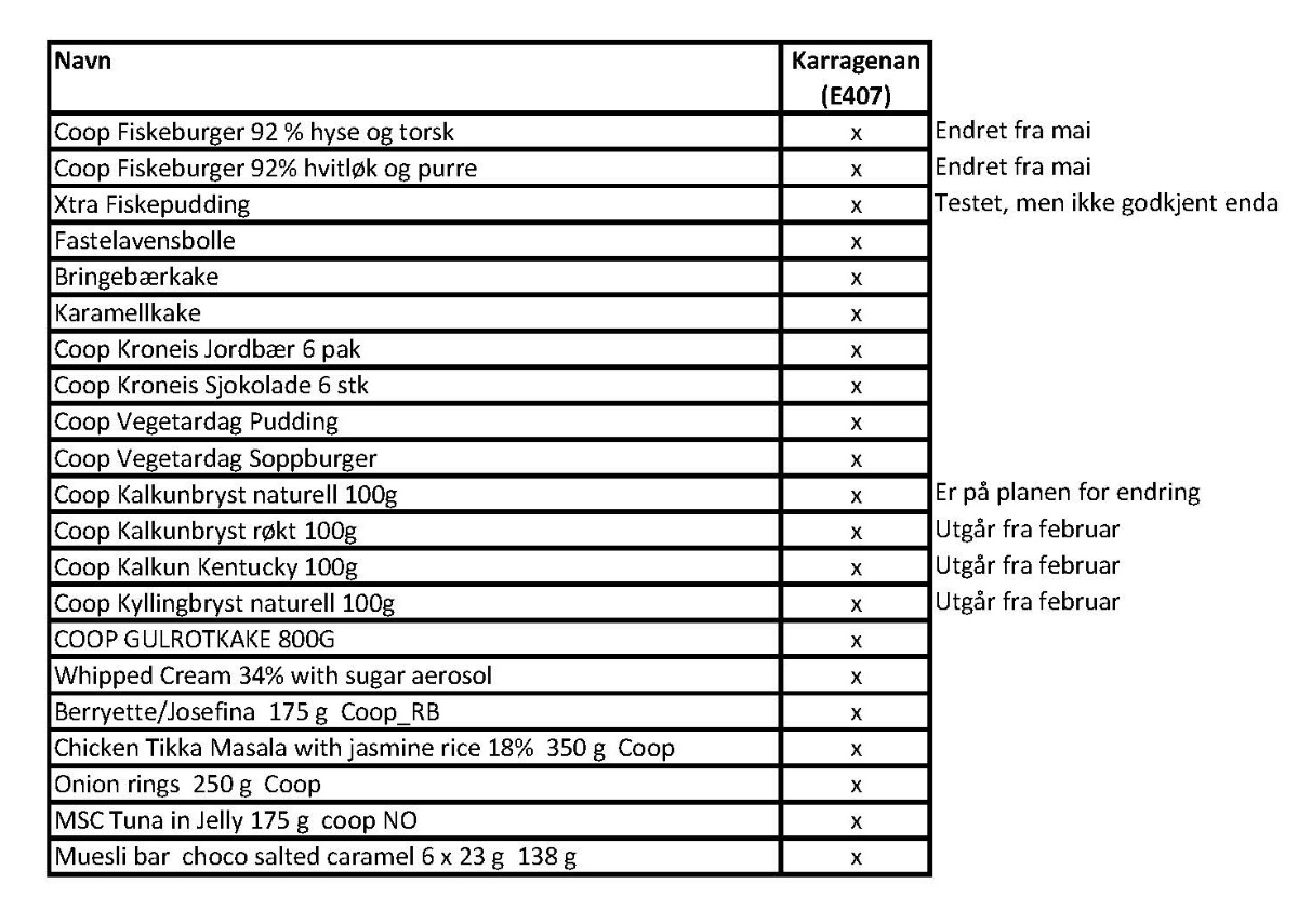 Coop har nå oppdatert sin liste over hvilke matvarer som inneholder karragenan.