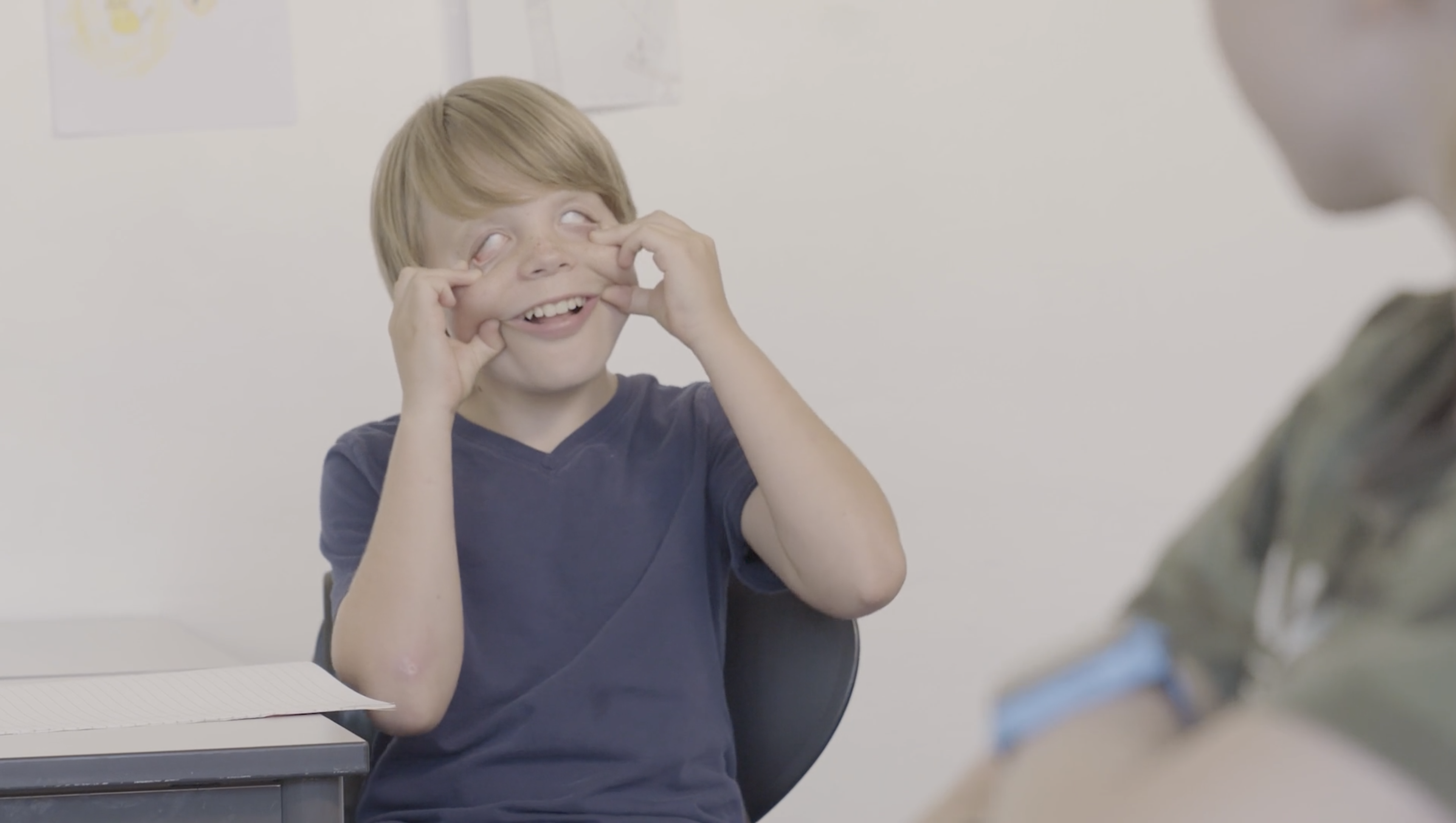 Eleven Tomas lager ablegøyer for å slippe ut av klasserommet, slik at han kan gå på do. LMFs nye filmer viser hvor vanskelig skolehverdagen kan være for barn og unge med fordøyelsessykdommer, og hvor viktig det er med god tilrettelegging. Foto: screenshot fra filmen «Tomas trenger en timeout».